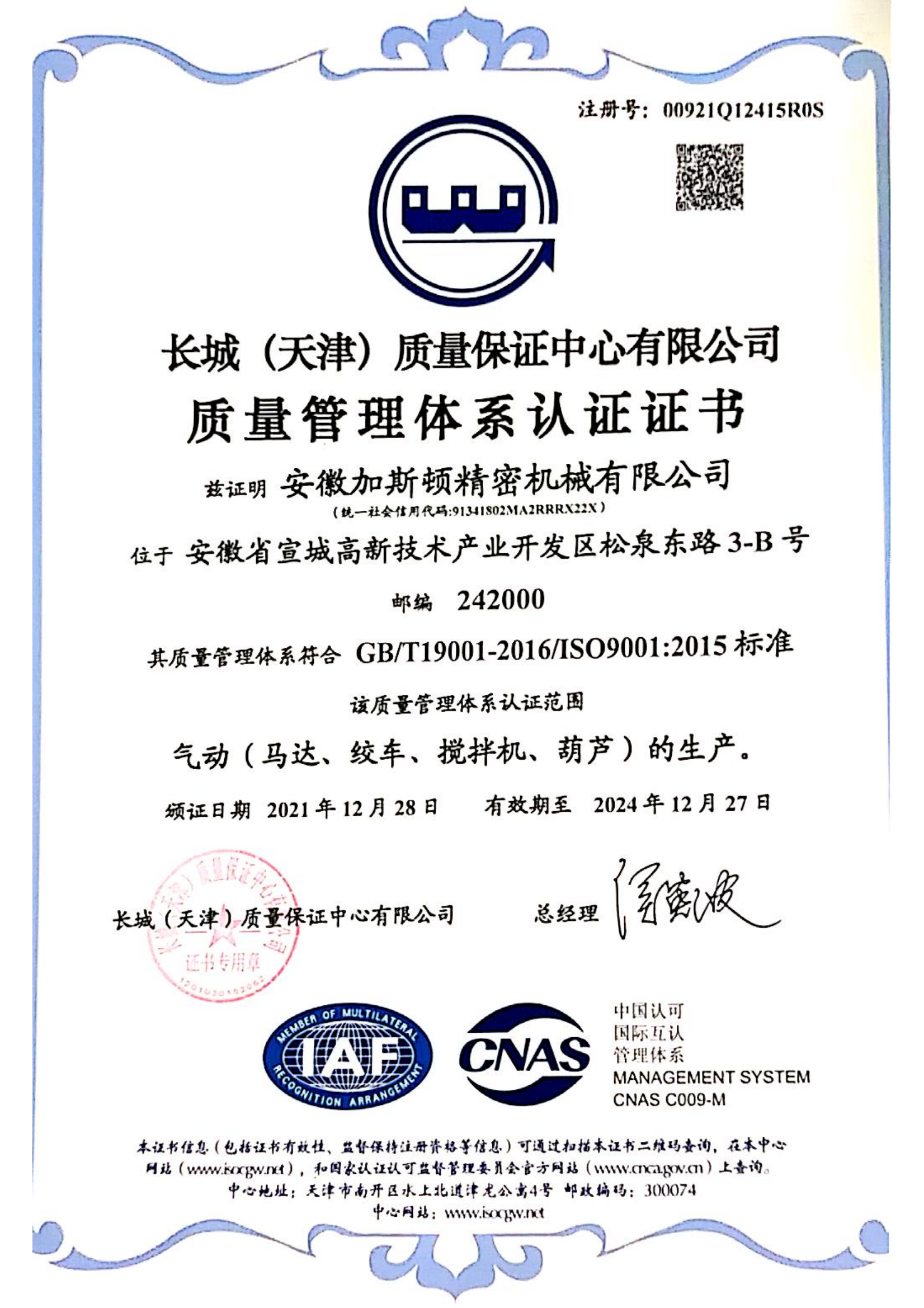 ISQ9001證書